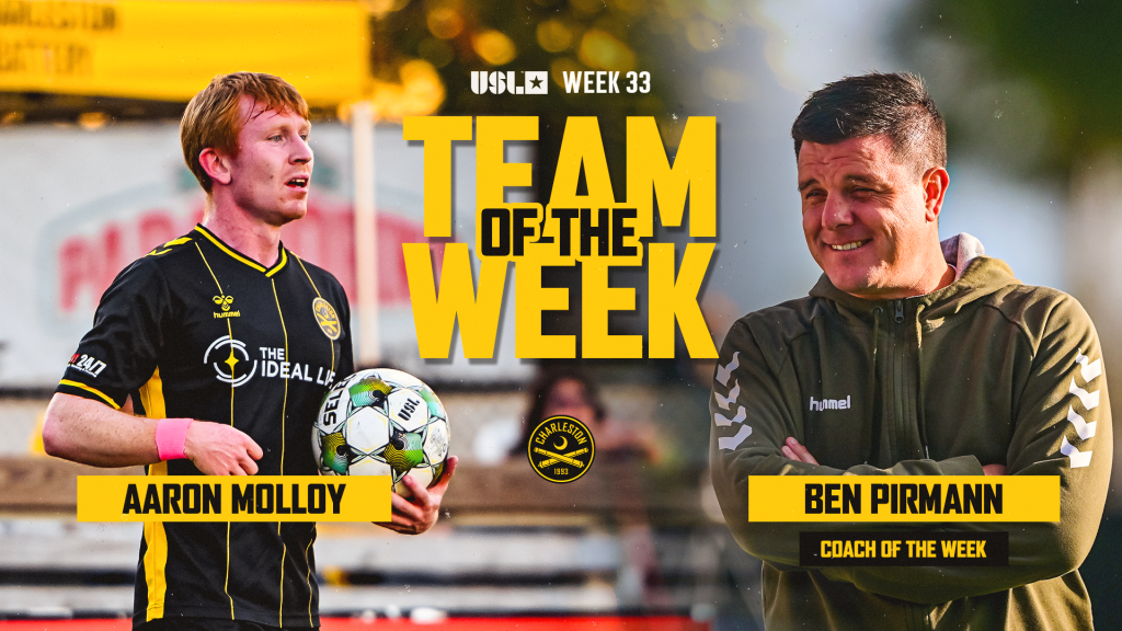 The USL Championship announced Tuesday that Charleston Battery midfielder Aaron Molloy and Head Coach Ben Pirmann were named to the league’s Week 33 Team of the Week.